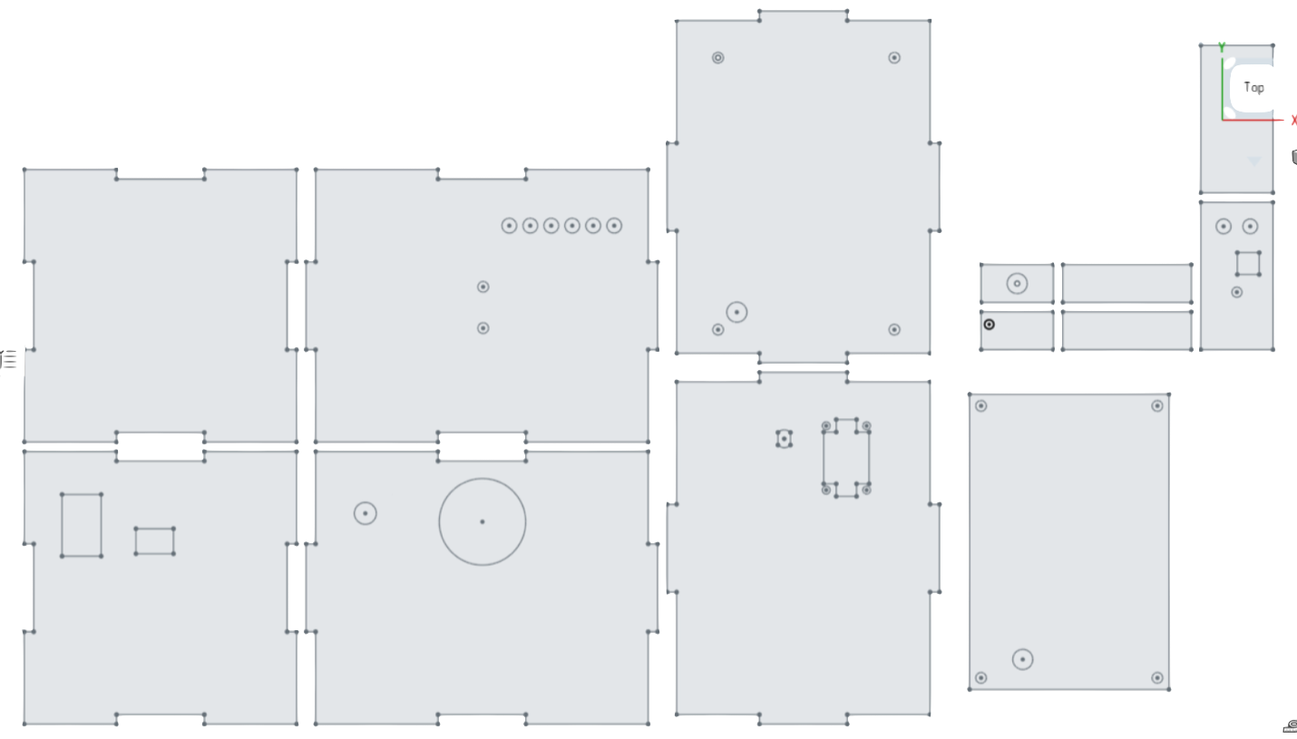 This is the 3D CAD model made on OnShape. This was then used to laser cut a ⅛” black acrylic sheet (screws and super glue were then used to put the pieces together).